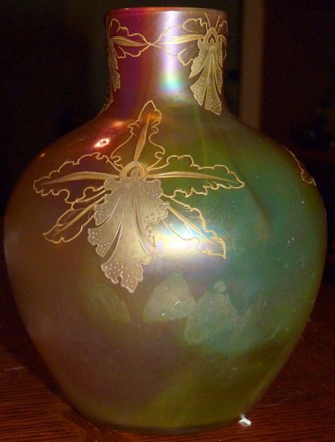 741 -- Art Nouveau Rainbow Iridescent Harrach Vase,