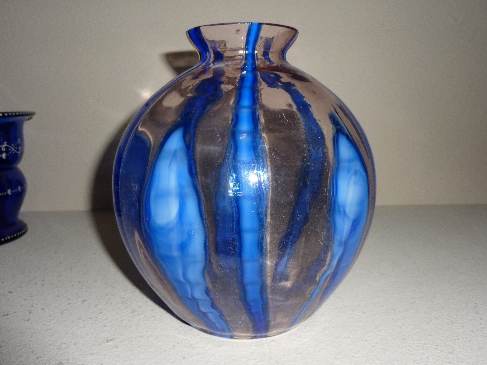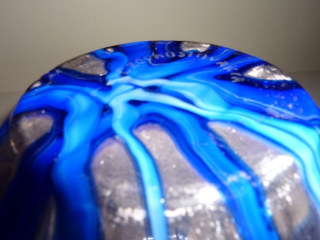 373 -- Kralik: glass ball vase blue Bambus light pink base glass