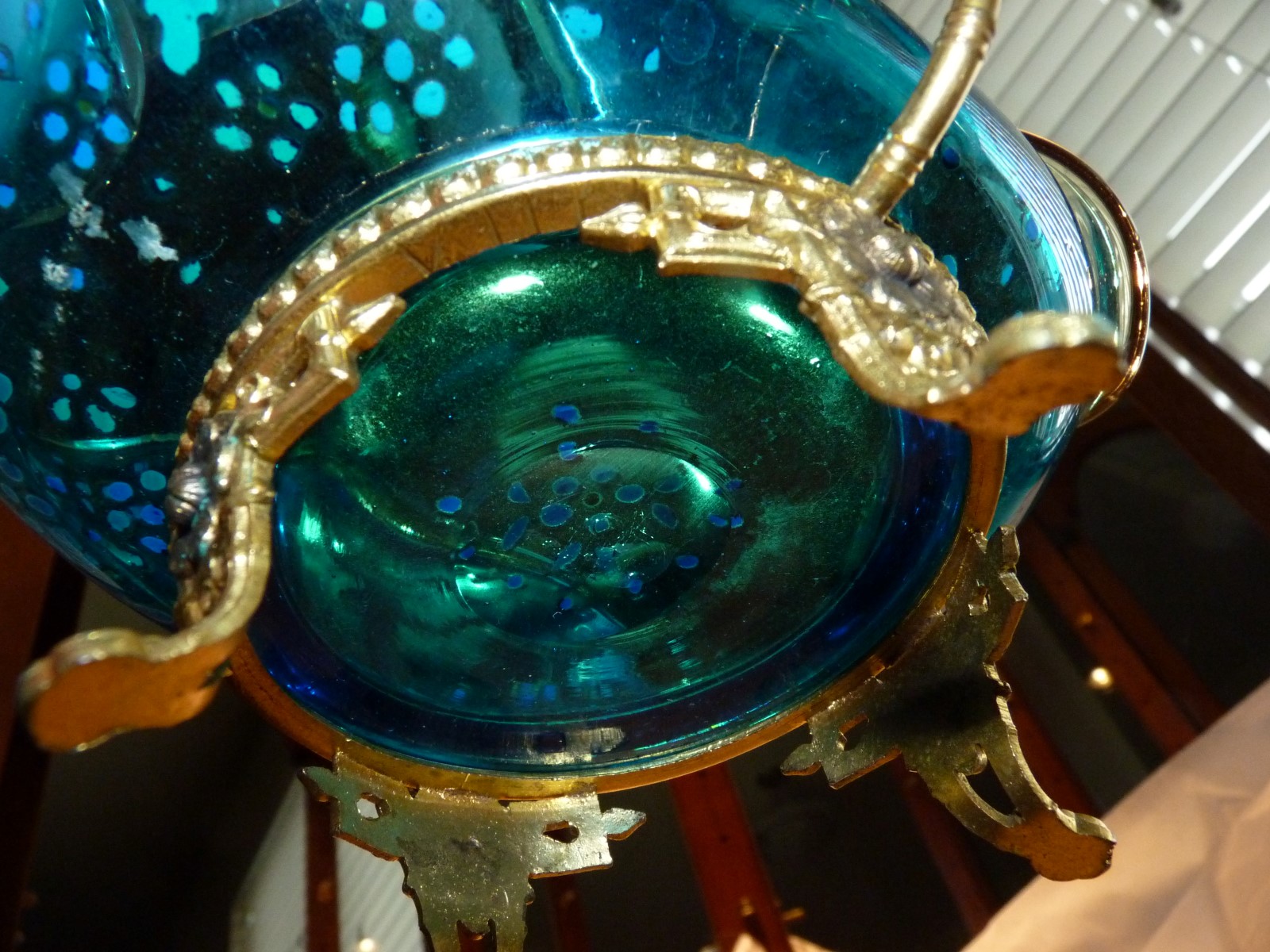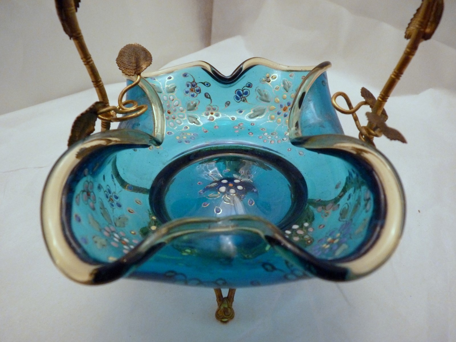 1029 -- Aesthetic period blue cased brides basket with enamelling and fancy ormalu
