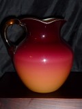 836 -- Wheeling glass Amberina pitcher with square rim. documented shape.