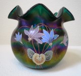 1018 -- Art Nouveau enameled and etched glass vase with flowers 6"