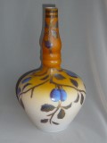 39 -- Yellow shaded satin glass vase Harrach, plums enameled