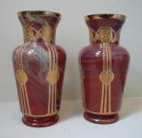 295 -- Oxblood gilded, Pair Harrach glass vase